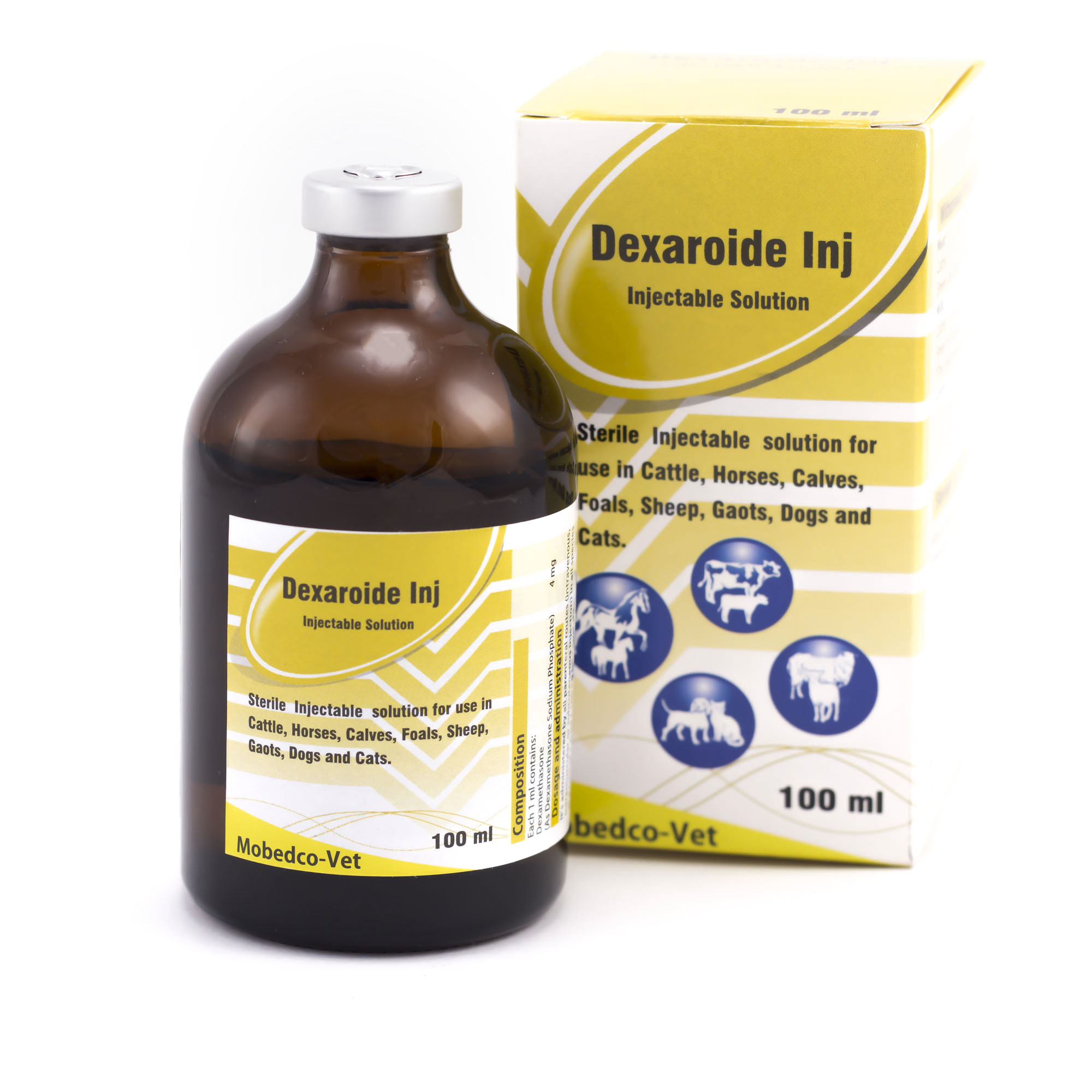 Dexaroide, featuring Dexamethasone Sodium Phosphate, is a potent corticosteroid renowned for its anti-inflammatory, anti-shock, and gluconeogenic properties. This versatile solution can be administered by various routes in multiple domestic species, including cattle, horses, sheep, goats, dogs, and cats.