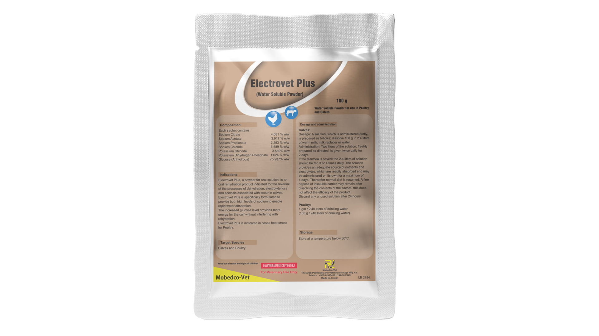 ELECTROVET PLUS, a powder for oral solution, is an oral rehydration product indicated for the reversal of the processes of dehydration, electrolyte loss, and acidosis associated with scour in calves, whether due to nutritional, bacterial, viral, or cryptosporidial causes.ELECTROVET PLUS is specifically formulated to provide both high levels of sodium (90 mmol/1) to enable rapid water absorption and also to provide increased bicarbonate precursor for the correction of acidosis.The increased glucose level provides more energy for the calf without interfering with rehydration.